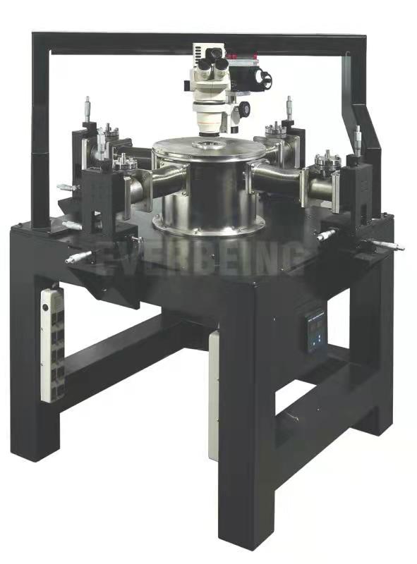 探針座架設在真空腔體外側,在不破壞溫度及真空環境的情況下,隨著元件的冷縮熱膨,探針座可配合將探針做重復修改下針,為消除來自于真空腔體及地的震動,內建主動氣浮式防震桌。探針座2組到8組,真空10exp-3 Torr 到10exp-6 Torr, 甚至提供腔體正壓到達10atm,超低溫達4度K,超高溫達1200℃,除了DC直流pA應用之外,RF射頻也能勝任到40GHz。適合感知器,航太及軍事精密產品電特性分析,點選巨集而強大的其它應用。